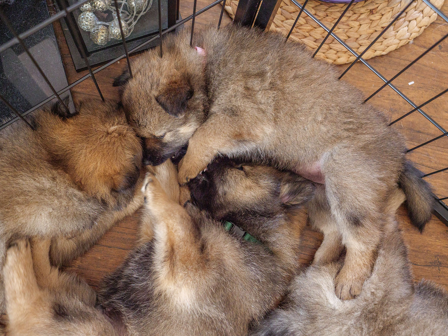Die Welpen wachsen in unserem Haus mit Garten und engstem Familienanschluss auf. Bereits in den ersten Wochen bereiten wir sie bestmöglich auf das spätere Leben vor. Mit ca. 9 Wochen ist es soweit und die Welpen ziehen in ihr zukünftiges Zuhause.